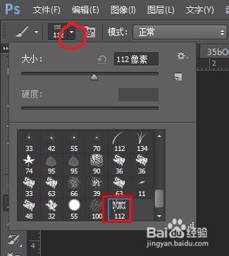 第九步:单击红色线圈中标识表记标帜的标的目的下的白三角,选择已经预设的画笔。