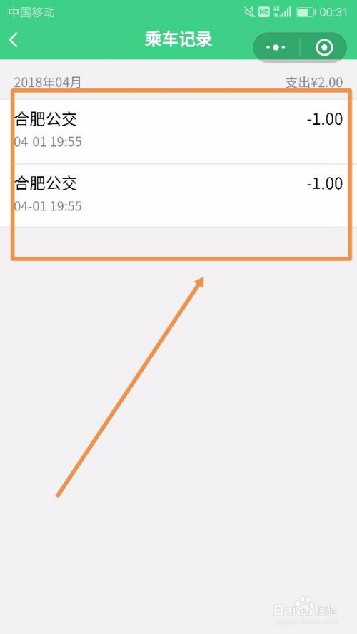 在【小我中间】中,我们点击【搭车记实】后,就可以看到我们曾经的搭车记实了,以及付出的钱条目。好比从这里可以看到2018年4月份,我利用【腾讯搭车码】付出了【2元】,如图所示~