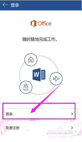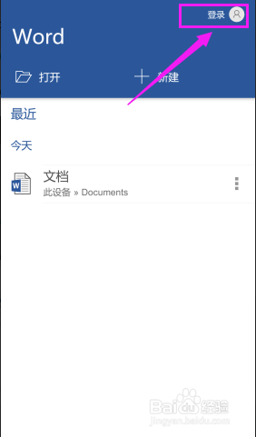 打开手机上的Word,点击页面右上角的【登录】。