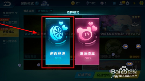 完当作2场道具赛后,点击“相逢模式”,选择“匹厢房间”,选择“相逢竞速”模式,完当作一场相逢竞速模式即可