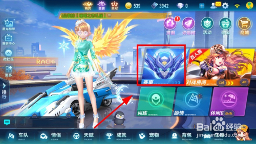 首先登岸你的QQ飞车手游,进入界面后点击“赛事”