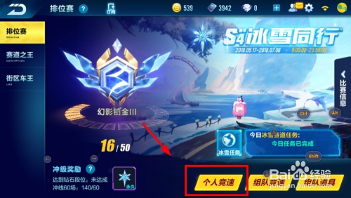 在“经典模式”中,选择好难度品级,点击“匹厢房间”,选择“小我竞速模式”,起头匹配即可,完当作12场小我竞速赛即可