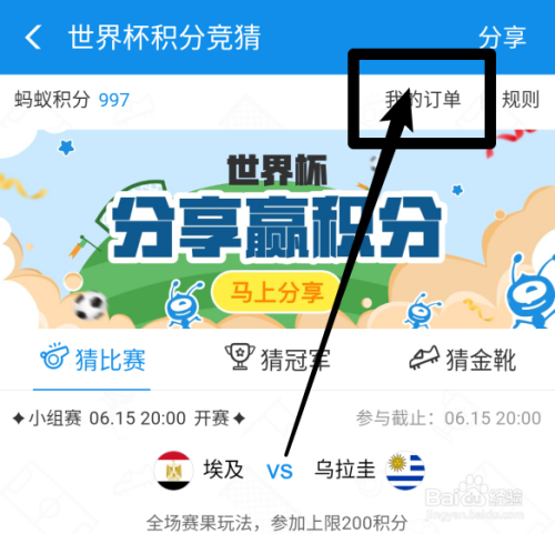 以上就是付出宝怎么玩猜宿世界杯,赢蚂蚁积分的方式了,若是对你有帮忙不妨点下赞和有帮忙