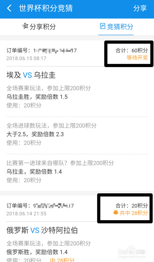 查看我们竞猜的记实,竞猜是否当作功和获得的积分几多