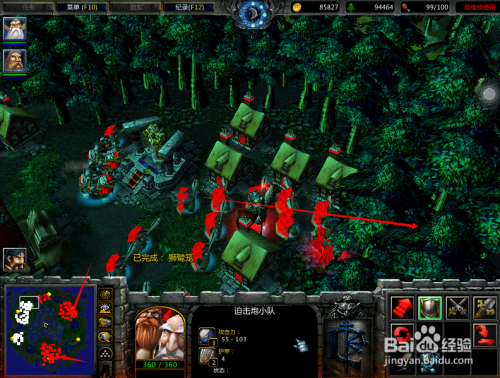 若是碰到封锁的地图,出产再多的兵也是出不去的,英雄和兵都被困住了,如图。