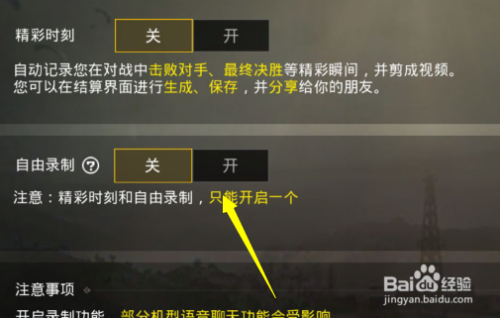 在录像设置下有一个录制时刻,还有一个自由录制的选项我们把自由录制开启即可。