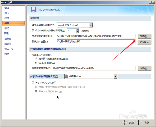 同样我们还可以在箭头所示的位置点击更改保留的文件的位置。设置完当作后点击右下角的“确定”按钮。