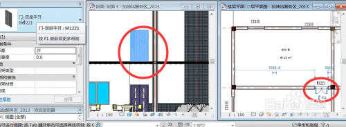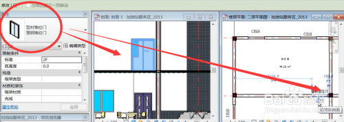 打开Revit软件,并打开文件,如图所示界面,这里举例申明怎么点窜门?