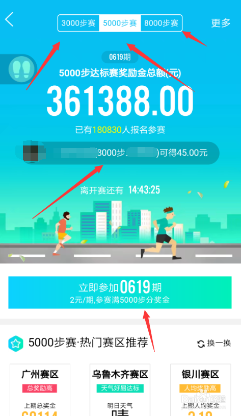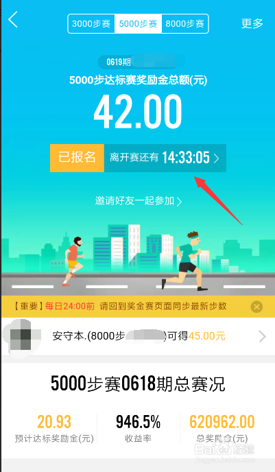 在奖金赛里大师可以选择3000步数的、5000、8000的,老友里已经有人起头加入啦