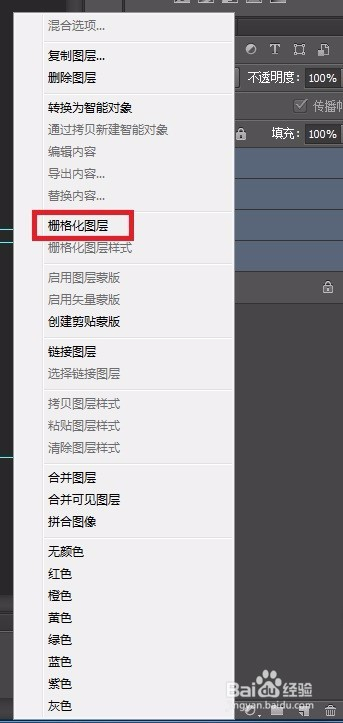 想要编纂图片,需要在该图层上单击鼠标右键,在弹出的菜单栏选择“栅格化图层”号令即可。