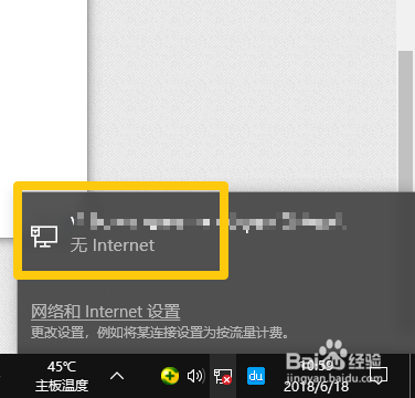 如许我们就可以看到收集显示【无internet】,已经断开收集了