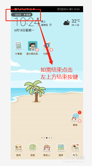 录屏起头均有提醒信息,按提醒信息操作即可。