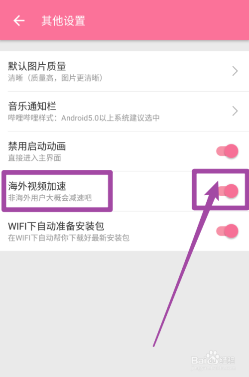 进入其他设置后,点击开启海外视频加快(默认是封闭的)