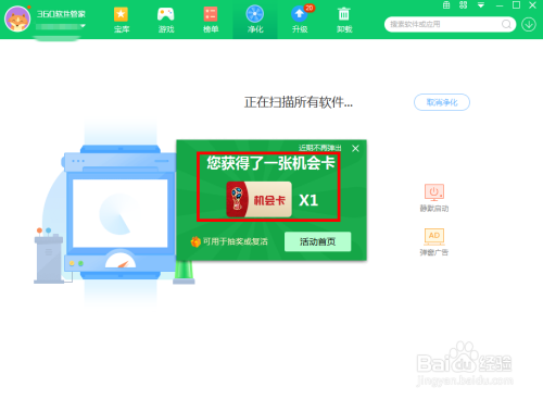 好比,利用360管家里面 净化 功能,也可以获得一张 机遇卡 。