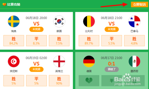 然后会进入活动首页,看到近期要进行的几场角逐。玩儿法是猜角逐成果,哪对会赢仍是平手。