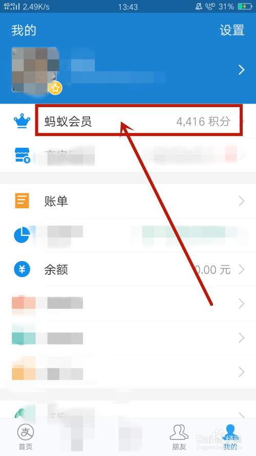 在我的页面,点击进入蚂蚁会员,如图所示