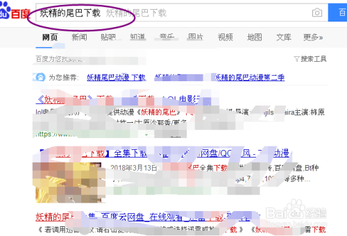 可以在百度输入‘妖精的从头至尾巴’搜刮下载,如图。