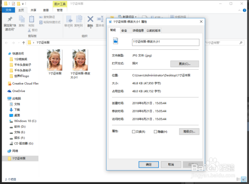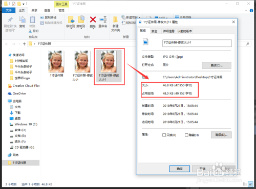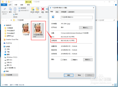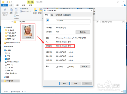 我们来先看一下需要点窜的证件照,右键属性可以看到证件照的大小,在100K以上。