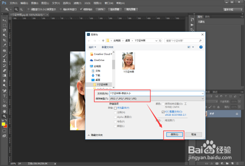 在存储为弹窗中,点窜下文件名,保留类型选择为JPEG,然后点击【保留】。