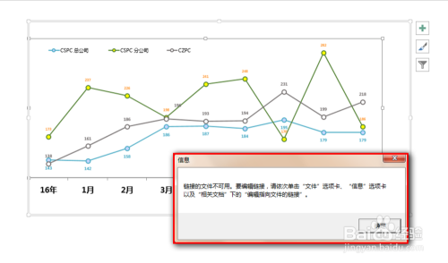 这是因为我们的粘贴操作,只是在PPT与Excel之间成立了一种联系关系关系,一旦Excel文件毗连不上,PPT中的图表就无法进行编纂。