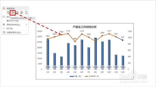 第1种环境是:选择第2个粘贴选项,完全保留Excel中图表的格局,同时完当作图表及数据的嵌入操作。
