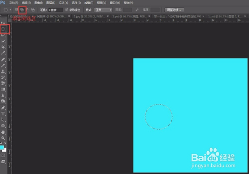 选择“椭圆选区东西”,单击节制栏中“添加到选区”按钮,然后在画布上绘制一个圆形。