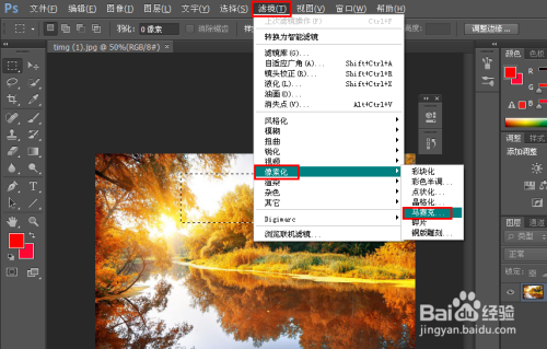 这时找到上方东西栏的滤镜,打开像素化,点击马赛克。
