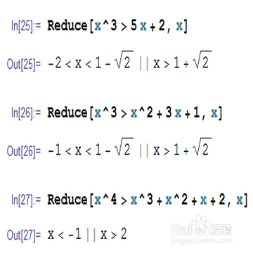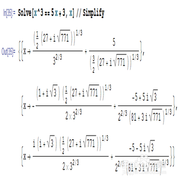 这些不等式满是用Root函数暗示出来的。可是,这些不等式转化为方程,却都是可以求出根式解的,以x^3 = 5 x + 3为例,它有三个解。