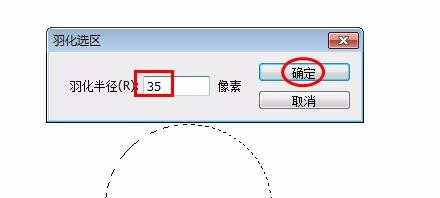 第六步:选中图层2,在菜单栏中选择“选择--点窜--成仙”,在弹出的对话框中设置成仙半径为35,单击“确定”按钮。