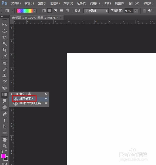 第四步:在左侧东西栏中选择“油漆桶东西”,在右上脚色板中选择白色,并填充到月亮中。