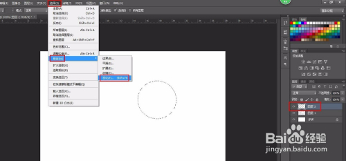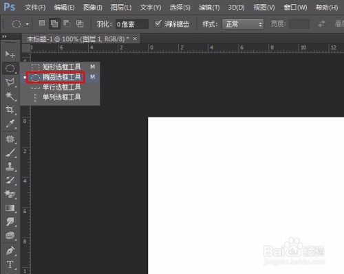 第三步:在左侧东西栏中选择“椭圆选框东西”,按住shift键在布景图层画一个正圆。
