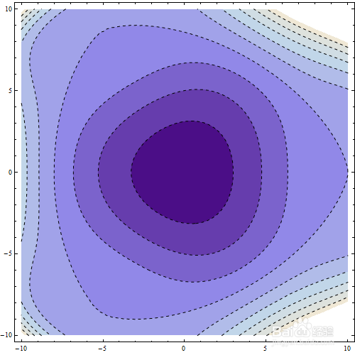 ContourPlot[F[x, y], {x, -10, 10}, {y, -10, 10}, ContourStyle -> Dashed, Contours -> 20]