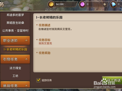 点击屏幕右上角的使命,可以看到进阶使命,长老树精的乐土。