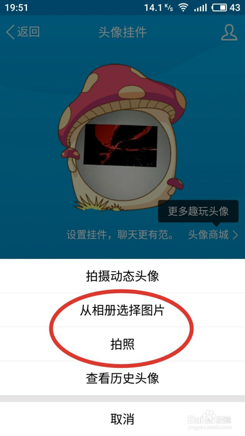 然后,再点一下头像,此次,会呈现一个窗口,选择第2或3个进行更改头像。(此经验本家儿写第2、3中方式,也可以选择第1和第4种方式改换头像)。