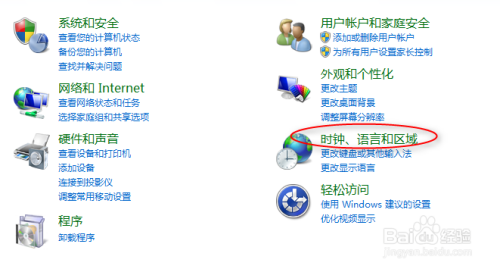 在节制面板选项中选择时候说话和区域设置,如下图。