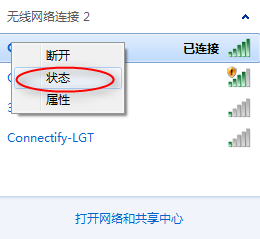 找到你所毗连的收集,右键点击,选择状况选项。