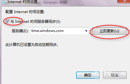 选中与Iternet时候办事器同步,并选择好办事器,点击当即更新。