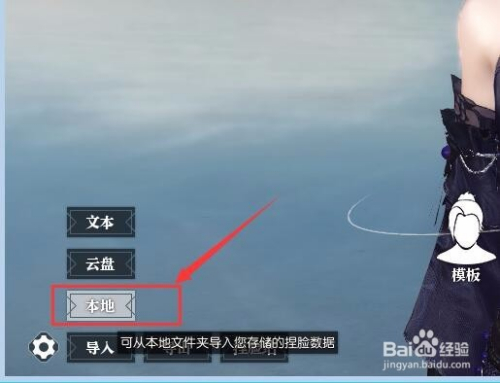 在脚色捏脸本家儿页面,我们需要用到的捏脸数据导入按钮就在左下角,点击左下角的导入按钮,然后选择当地导入。