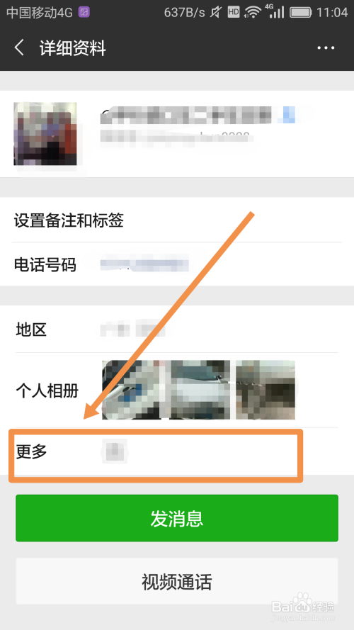 进入该老友的【具体资料】界面,找到【更多】并点击,如图: