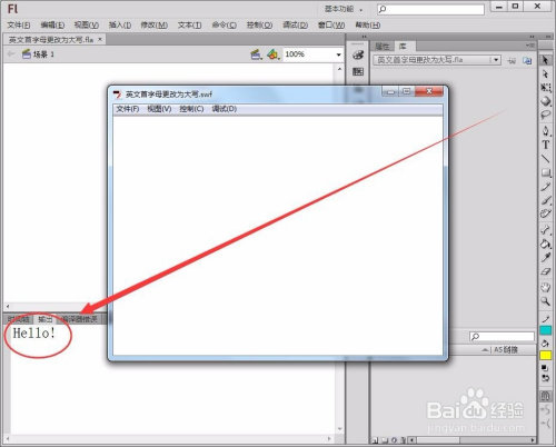 测试动画,在输出窗口中,当作功输出将首字母更改为年夜写的英文单词。