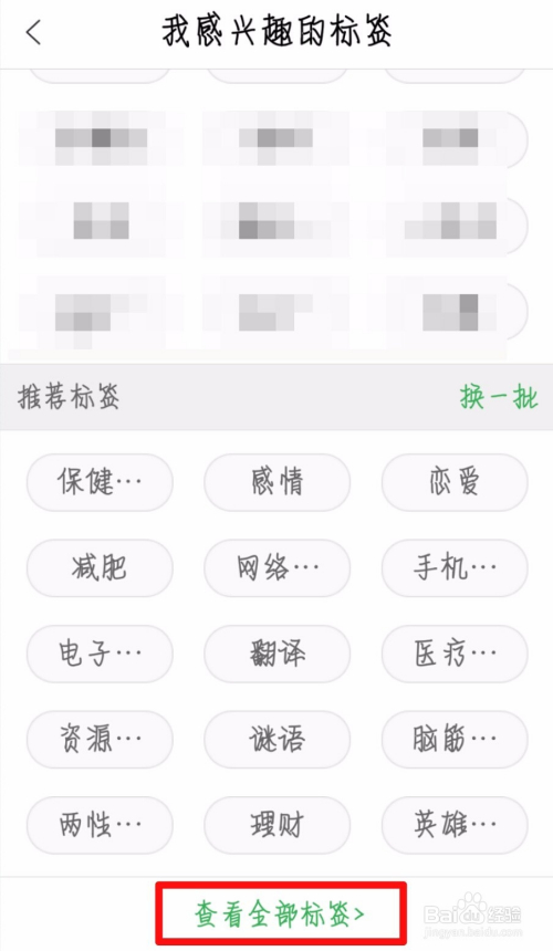 进入到【我感乐趣的标签】页面,我们点击一底端的【查看所有标签】。