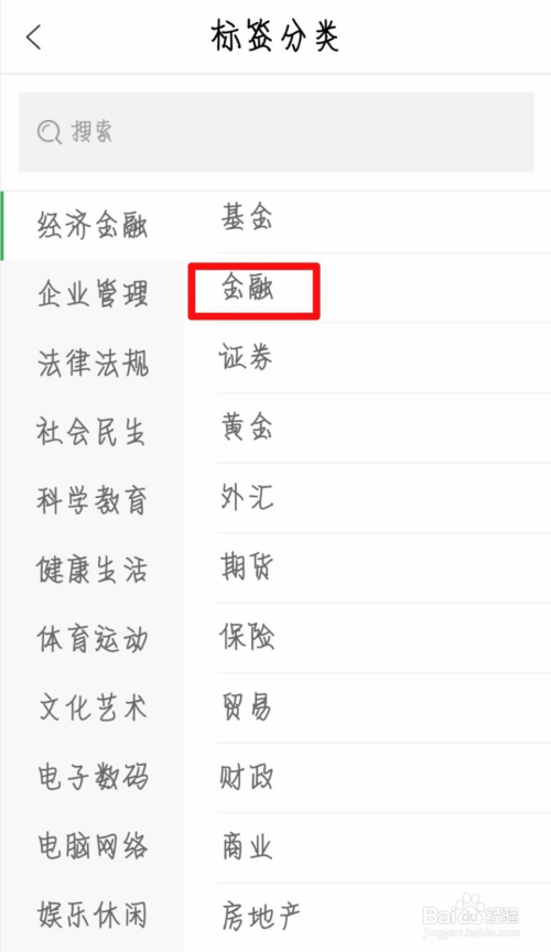 进入到【标签分类】的页面,我们可以点击一个分类再查看细化的分类都有哪些。