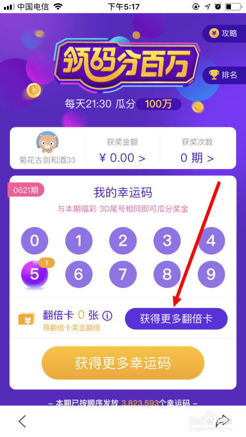 别的,还可以经由过程点击 获得更多翻倍卡 ,将奖金翻倍。