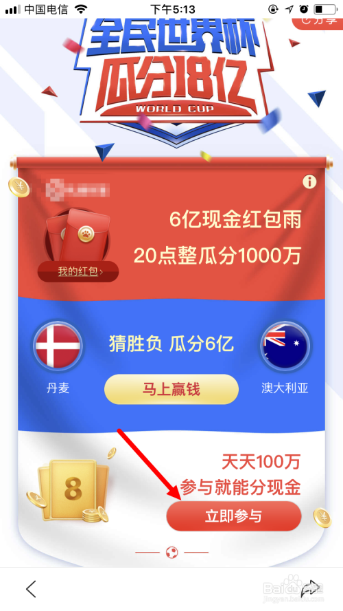 比来,百度推出一个 全平易近宿世界杯 的活动。不仅可以抢红包,并且料中宿世界杯角逐成果还能瓜分奖金。下面就来看看如何玩转 全平易近宿世界杯 。
