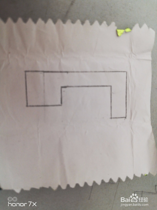 在口喷鼻糖纸上用铅笔和尺子画一个像"凹“字的图形。