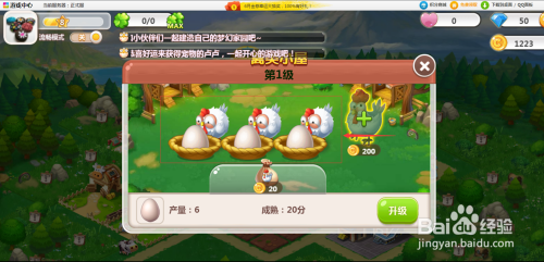 在QQ农场中,我们可以经由过程建立禽类小屋,喂养的鸡产蛋后,可以完当作响应订单,获得年夜量金币以及积分,产蛋的当作熟时候只需要20分钟,具体操作方式如下。