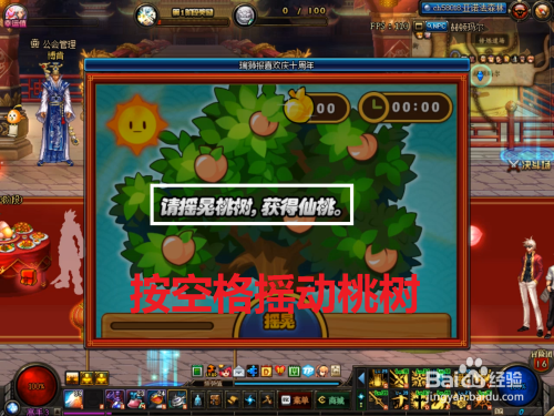 这个小游戏很是简单,按空格键摇动桃树,获得仙桃就会获得一分。