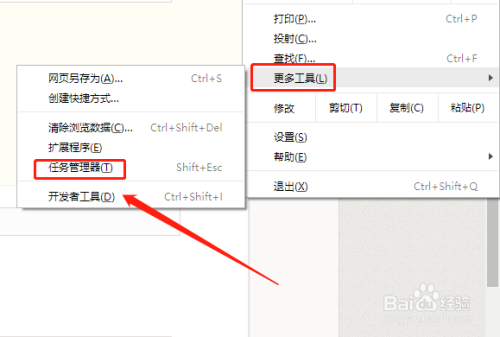 子菜单栏出来后,即可看到谷歌浏览器的使命办理器按键,如下图红标位置所示。