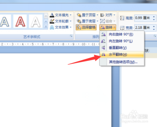 然后按Ctrl+c复制,Ctrl+v粘贴,复制出来一个不异的箭头,再点击格局里面的扭转。