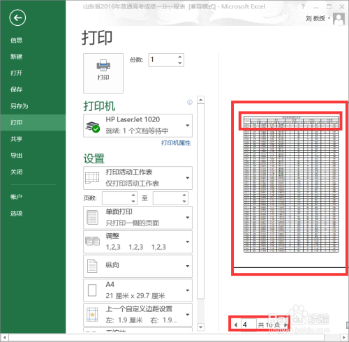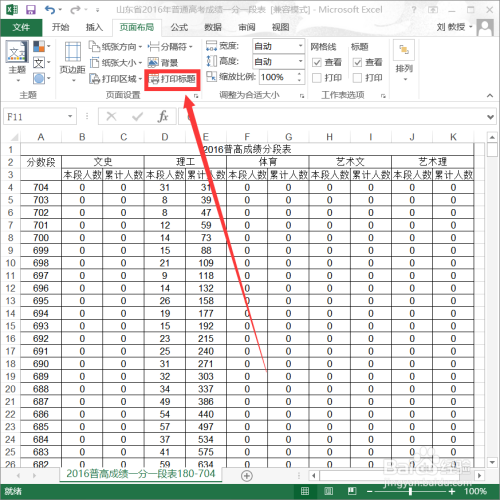 选择所示题目行选择,上面“页面设置——打印区域”就有显示。